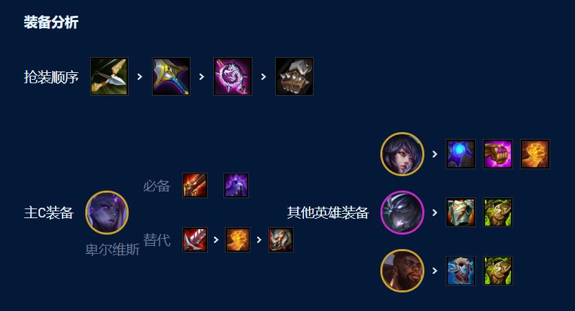 卑尔维斯可以用火炮,次选羊刀,做个夜刃防爆发,最后泰坦,老黑用冰甲,肉装给慎,法装给狐狸