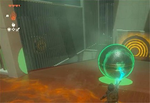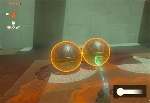 1、进入伊乌恩欧罗克神庙(选择大小)后,我们把用究极手把球放在下坡上,就可以开启第一个大门。