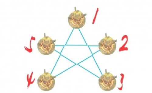 3、按照顺序点亮就是一个五角星的图形,然后就可以完成解密了,开启机关会出现敌人,将敌人都击败后就可以获得奖励了。