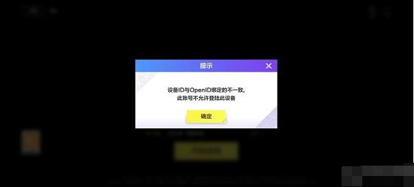 遇到如图所示的情况,就是我们第一次登录绑定的游戏设备与当前的设备不符了,所以第一次登录游戏最好选择自己一直使用的设备登录。