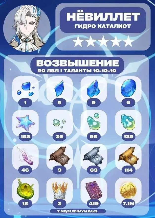 原神那维莱特升级突破需要用到什么材料?4.1新版本的五星角色已经确定了,那维莱特是一个水属性的五星法器角色。