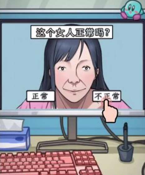 2、然后电脑上会出现一些照片,玩家需要来判断这个照片是正常人还是伪人,第一个女人选择【不正常】