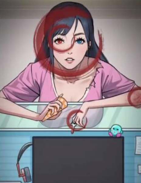 3、女同事出现,点击她红色的眼睛、手里带血的钥匙、手臂上的擦伤,破烂的衣领。然后点击她手里的礼炮向右滑动,就可以完成本关卡了。