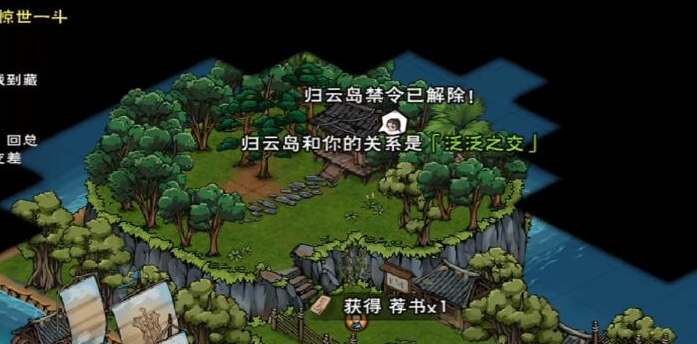 6、和狂半生对话即可获得荐书并解锁归云岛了。