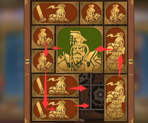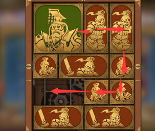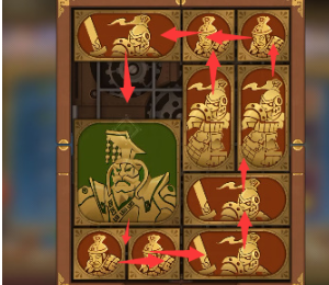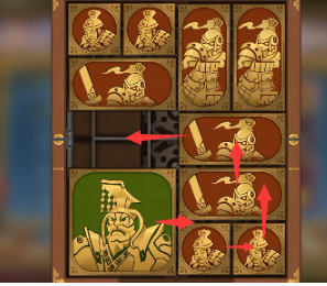3、左下方的正方形向上其右边的所有图形向左移动,右上角的长方形向下,将军向右。