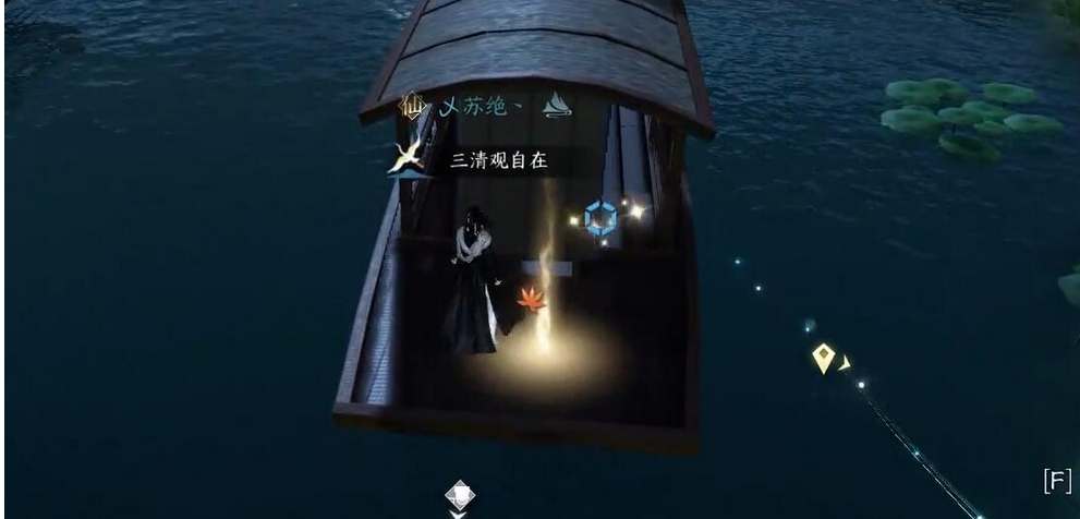 3、在棋盘处互动开启宝箱获得奖励,坐船前往桃花坞寻找三更娘子;