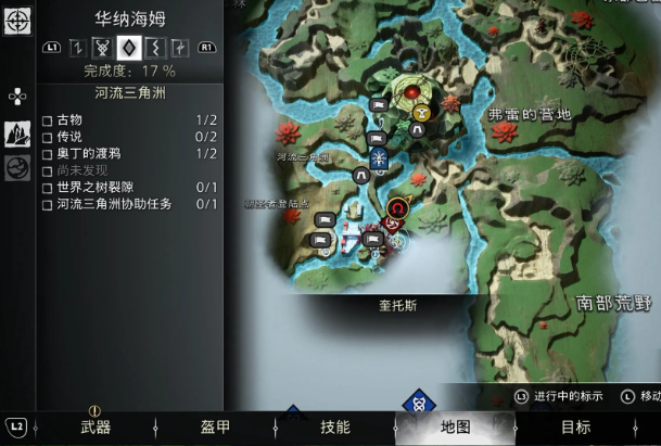 要拿到宝箱需要先进屋子,我们要先来到华纳海姆-河流三角洲,如图所示的位置有一个世界之树裂隙,先点燃红色的植物,然后打断洞内的铁链,大门就会打开,然后使用滑索到达诺欧通的后花园。