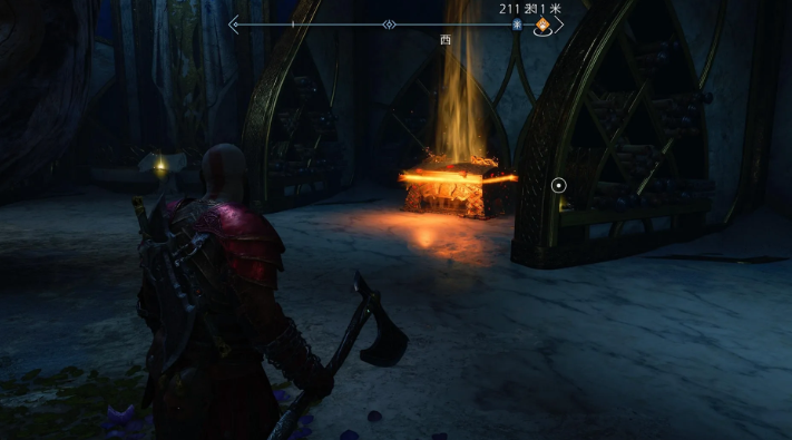 这个宝石也在支线区域,位于斯瓦塔尔法海姆-阿尔贝利希山谷,拿到长矛后,如图所示的位置可以找到传奇宝箱,里面有宝石。