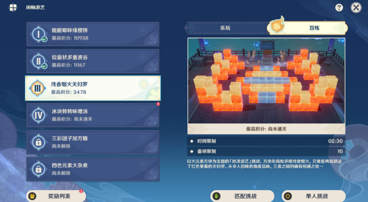 1、选择[线香烟火天妇罗],匹配或单人挑战。
