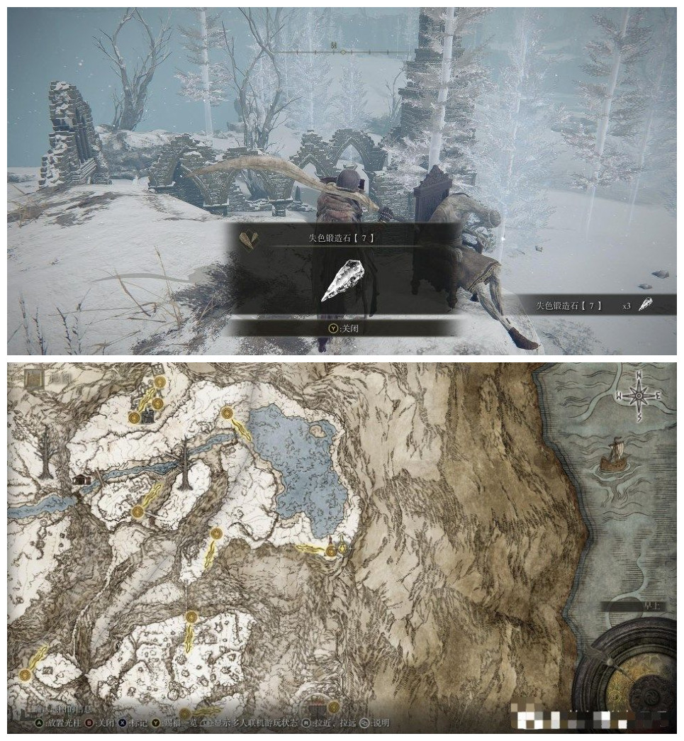 补充:图中雪山标记处里面有屎壳郎,得到失色锻造石8。