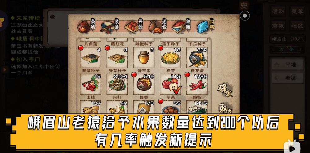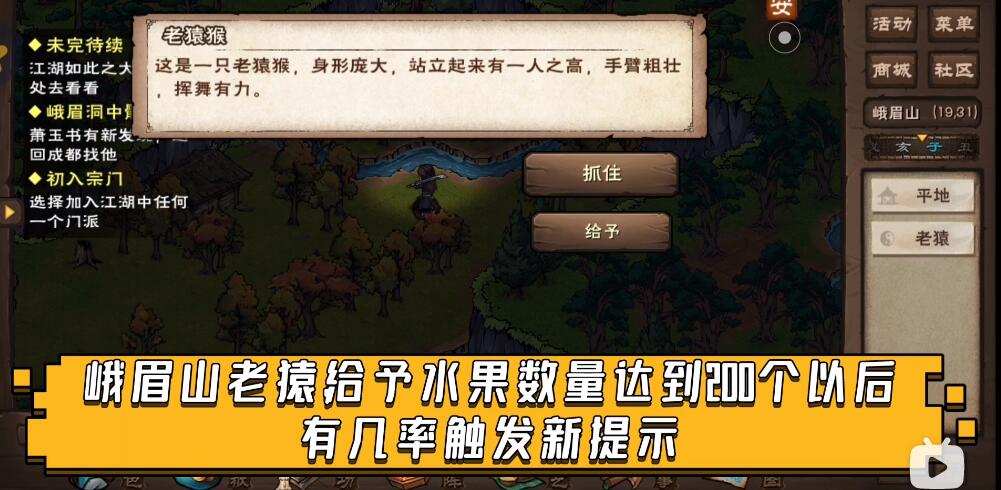 1、首先前往峨眉山的(19.31)位置,找到老猿猴,然后点击给予;
