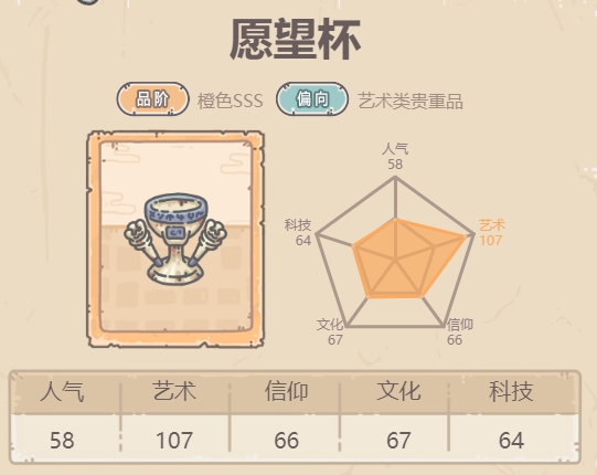 最强蜗牛中,愿望杯是一个橙色SSS级品质艺术类的贵重品,这个贵重品可以在我们抽奖获得紫珠的时候为我们的蜗牛增加属性强度,还概率将获得的蓝柱转化为紫珠。这个贵重品的属性是什么样的呢?