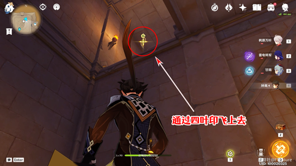 2、走道尽头发现四叶印飞上去。