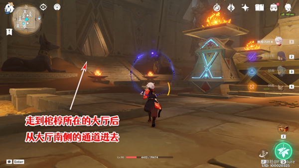 2、向西走棺椁大厅,启动电梯。
