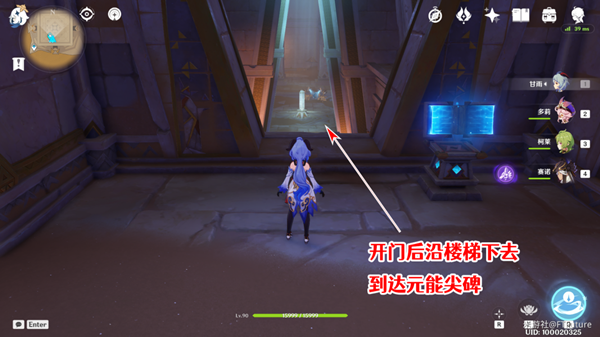 我们打开边上大门,沿着楼梯下去即可找到元能尖碑。