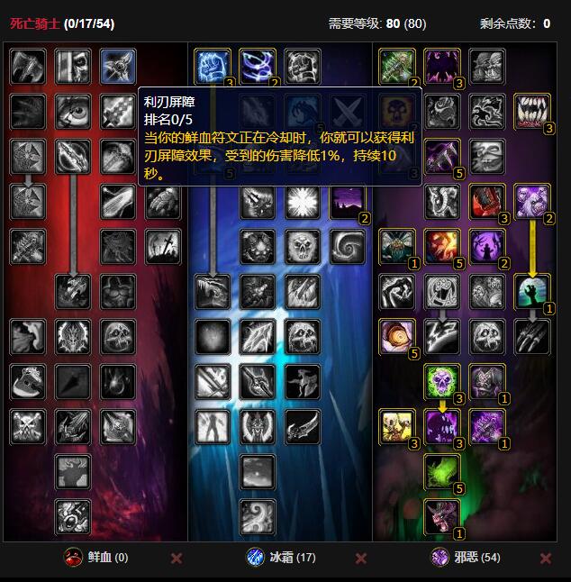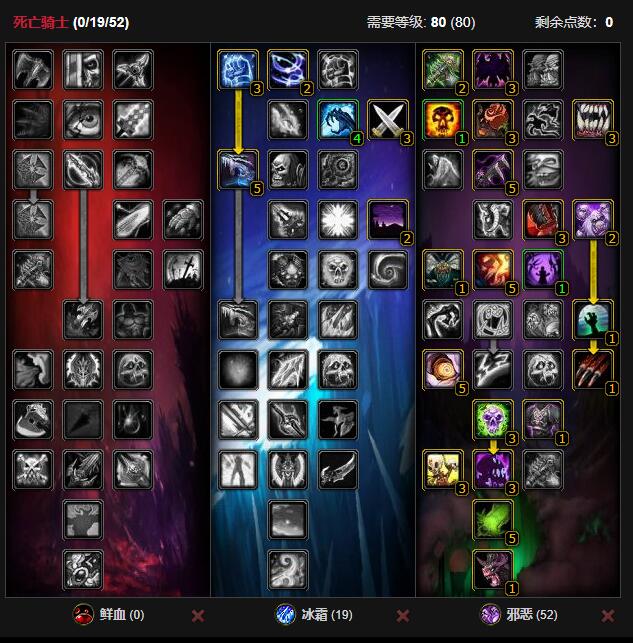 推荐点纯dps的输出,在前期还是不推荐玩冰dk,太吃装备了,这个点法可以最大化输出。