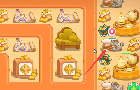 3、前期放两个满级分裂箭,清理障碍物和怪物,障碍物先清理沙发。