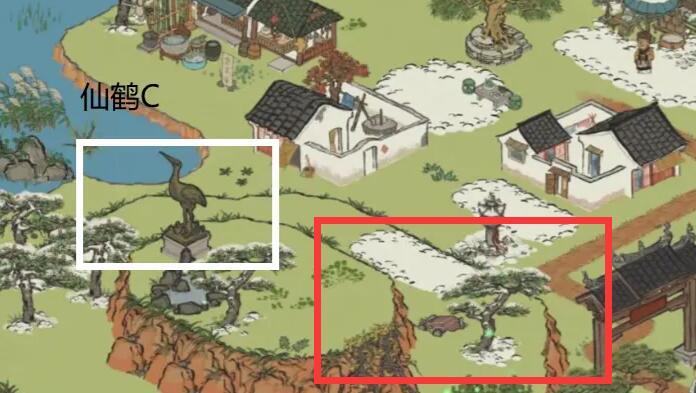 第三把钥匙在仙鹤与牌坊的中间。