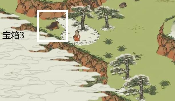 第三个宝箱在如图所示的左上角的角色的旁边。