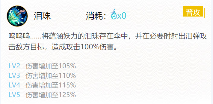 技能一:泪珠(0火)