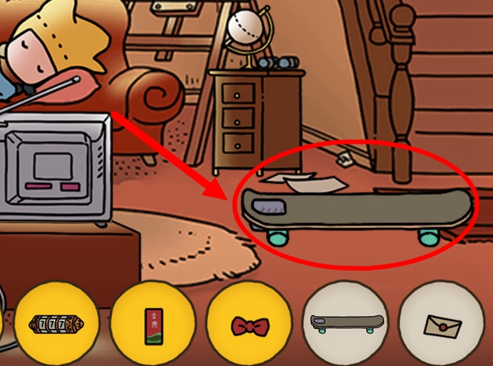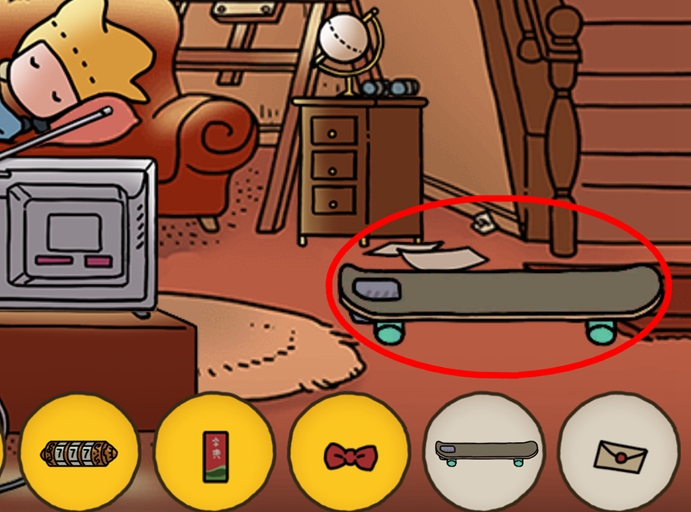 3、我们很容易在大侦探的旁边就能发现了滑板。