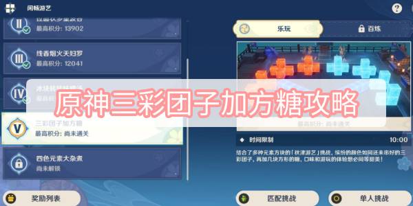完成了第五天开启的剧情[世事流水]后,旅行者们可以继续去玩各种小游戏。第五关叫做[三彩团子加方糖],同样分为乐玩模式和百炼模式。今天小编为各位玩家带来了原神三彩团子加方糖攻略,有需要这个攻略的玩家快来看看吧。