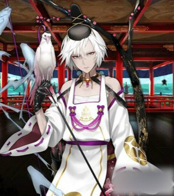 一血万杰道真公的弓箭是用梅花树枝做成的,上面还绽放着朵朵腊梅,一只白羽粉尾的鹦鹉则站在他手背上。