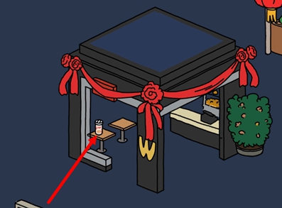 3、在地图左侧,餐饮区二楼一个黑色风格,有个大大黄色W的店里发现了八宝粥