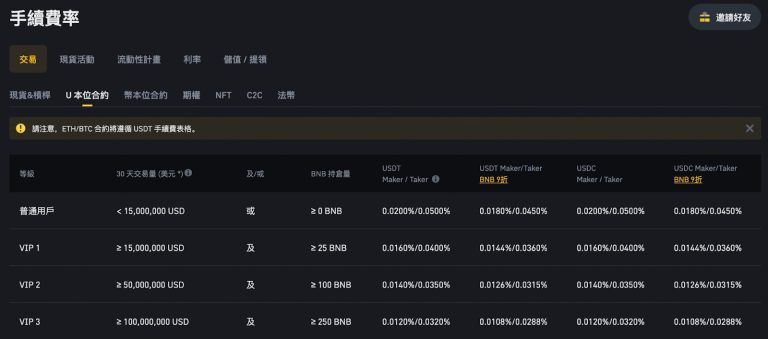U本位合约Maker费率0.02%,Taker费率0.05%;使用BNB可享10%手续费折扣。还需考虑资金费率这一隐性成本。