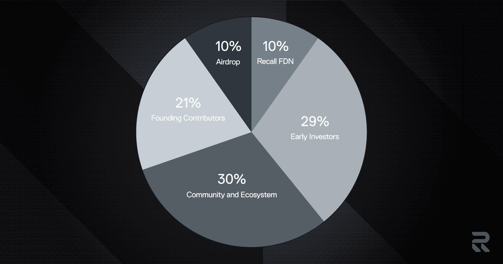 1. 总供应量:10亿枚RECALL 2. 初始流通:20%(2亿枚) 3. 分配比例:社区30%/投资者29%/团队21%/空投10%
