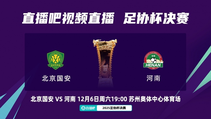 今晚19:00,北京国安vs河南的足协杯决赛将在苏州奥体上演,直播吧届时也将带来视频直播。