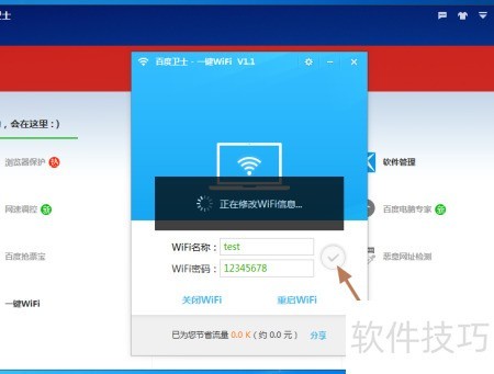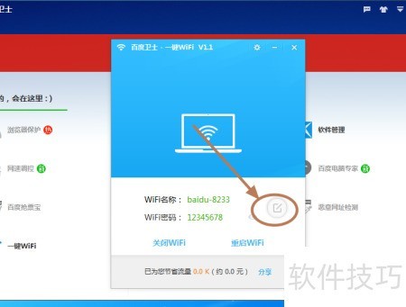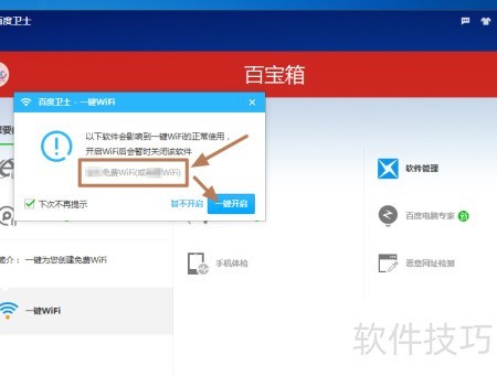 安装完成后,无需手动操作。若您当前连接的是其他共享WiFi网络,软件将提示您关闭现有连接,并启动已安装的“百度卫士一键WiFi”功能。