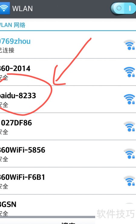 - 成功开启后,用手机打开WLAN,搜索以baidu开头的Wi-Fi热点,点击即可连接并上网。