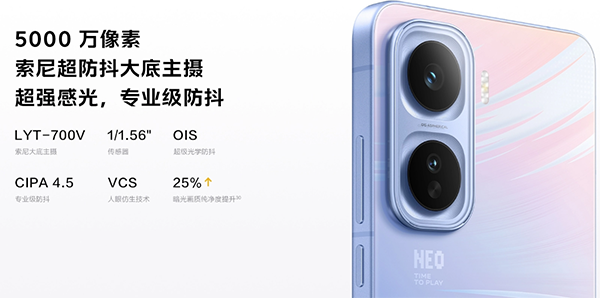 这次的iQOO Neo用了后置双摄的设计方案,其中包括一颗像素的大底主摄。搭载了LYT-传感器,具备强大的图像处理能力。支持f/光圈和OIS光学防抖等专业功能。同时配备了一颗像素的超广角摄像头,提供更大的拍摄视角和更多的细节捕捉。鱼眼模式的应用则在超广角镜头上实现了更丰富的视觉效果展示。