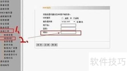 许多用户在设置路由器时可能会遇到一些困难。为了方便访问和管理互联网连接,强烈建议您将保存的网址输入到路由器系统工具中的“动态DNS域名”栏中。通常,这个位置可以在图示箭头所指的位置进行配置。对于不同品牌型号的路由器来说,这项功能可能以不同的名称出现,例如DDNS或Dynamic DNS服务。如果无法找到正确的设置位置,建议查阅您的设备用户手册,以便获取详细的使用指南。这样可以确保您的网络连接安全高效地运行。