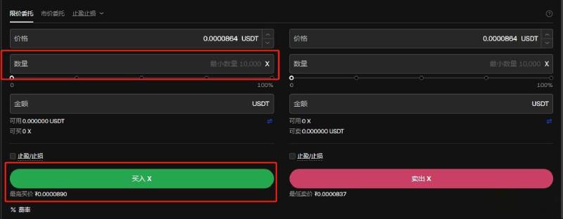 5.输入购买数量并确认交易指令