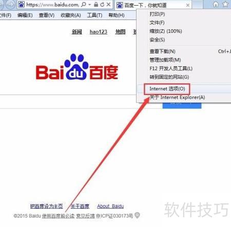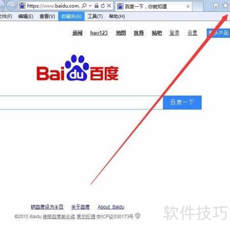 - 启动IE浏览器,点击右上角的齿轮图标,所示。