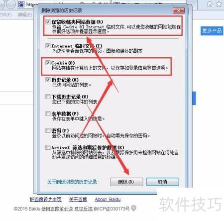 勾选Cookies文件选项,点击设置中删除按钮,轻松移除Cookies文件!