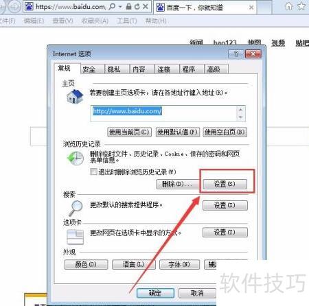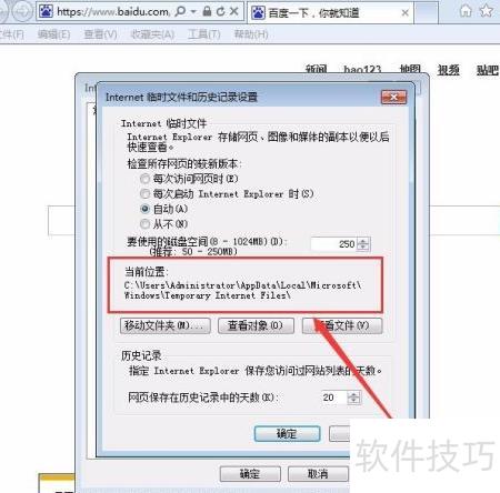 可以点击Internet选项下的历史记录部分,查看和管理Cookies文件。