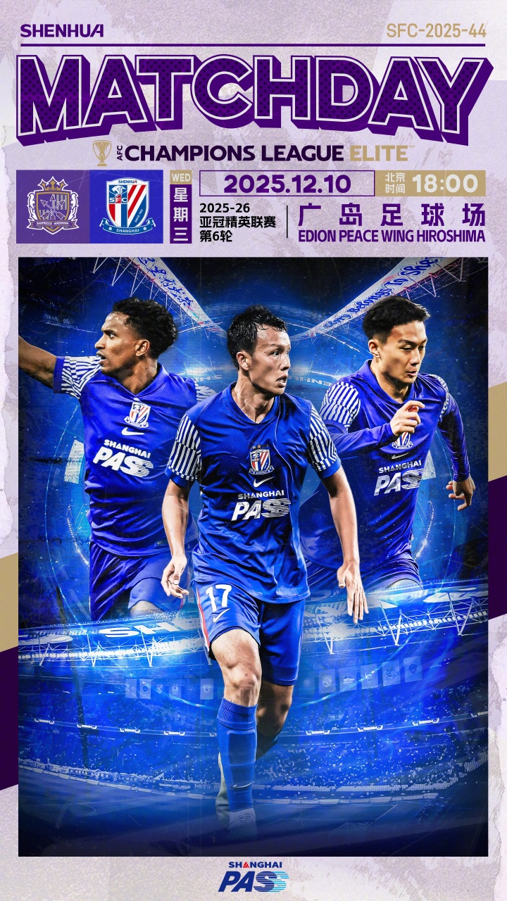 直播吧12月10日讯 北京时间18点,亚冠精英联赛东亚区第6轮,广岛三箭vs上海申花,赛前双方首发公布。