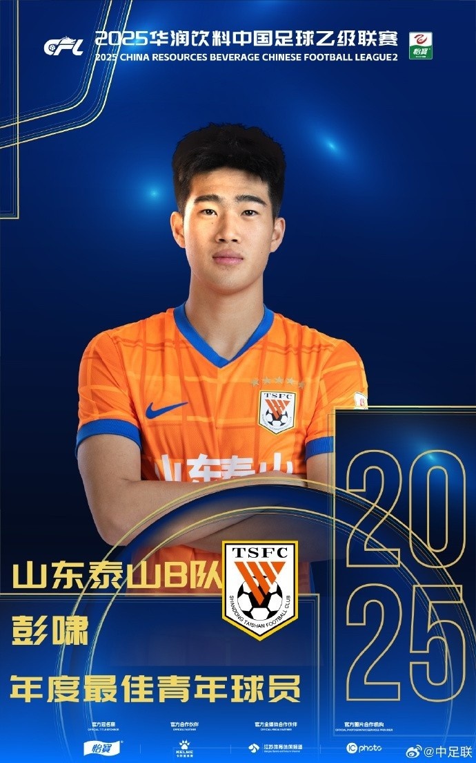 泰山跟队记者牛志明在平台发文,他认为彭啸下赛季有望冲击中超最佳青年球员。该记者写道:“彭啸当选中乙联赛最佳青年球员,入选最佳阵容,这也是一个肯定。当然,下赛季彭啸可以冲击中超最佳青年球员这个奖项,他在泰山队逐渐站稳脚跟,2026赛季会有更多机会。”